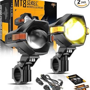 Auxbeam Motorcycle LED Fog Lights Auxiliary Lights Driving Light Spotlights 8 Modes White/Amber Dual Color Strobe Switchback 3 Inch 60W LED Offroad Work Light for Motorcycle ATV UTV Trucks – 2Pcs