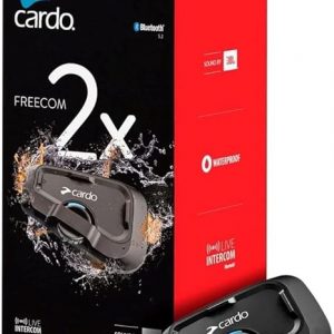 Cardo Systems FREECOM 2X Motorcycle 2-Way Helmet Bluetooth Communication System Headset Intercom, Universal Bluetooth Connectivity, Waterproof, 40mm Speakers – Dual Pack
