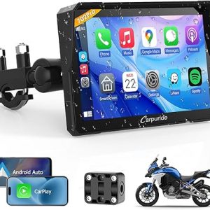 Carpuride W702PRO for Motorcycle CarPlay& Android Auto& Dual Bluetooth – 7″ Waterproof GPS Navigation Screen for Motorbike, Music Sharing, Intercom, EQ, Light Sensor, Compass, Barometer