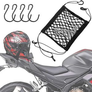 Cargo Net for Motorcycle Helmet Storage, 10″X11″ High-Elastic Double Layer Bungee Net with 4 Strong Hooks, Luggage Strap Rack Expansion Organizer Net Pocket for Motorbike Trike Cycle