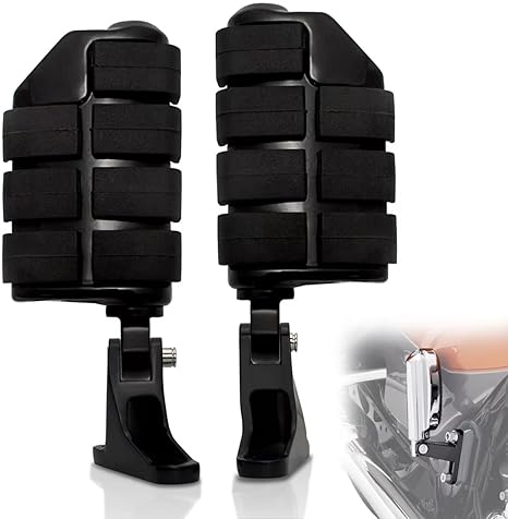 - [Enhanced Rider and Passenger Comfort]This mount kit moves the passenger’s foot rearward and inward to give the rider more space between the rider footboard and the passenger foot support. The new position clears the path for your feet to ease walking the bike in and out of parking spaces. When folded, the pegs are tighter to the bike to reduce the chance of contacting the passenger foot support with your calf;